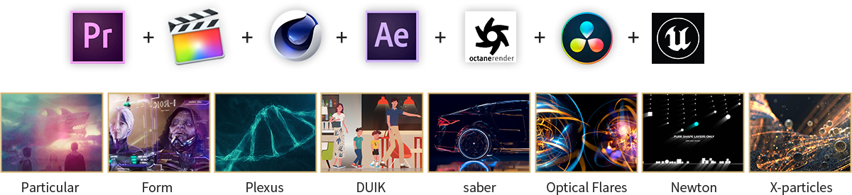 你将学习专业的剪辑软件Avid MC、PR、调色软件DaVinci Resolve 18、三维设计合成软件C4D、AE以及当下火爆的游戏开发引擎软件UE5的设置与操作。