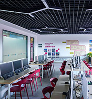 先进的教学设备,千余多台惠普品牌教学电脑,企业项目实训教室,设有专业实训室,给学生提供学习环境。